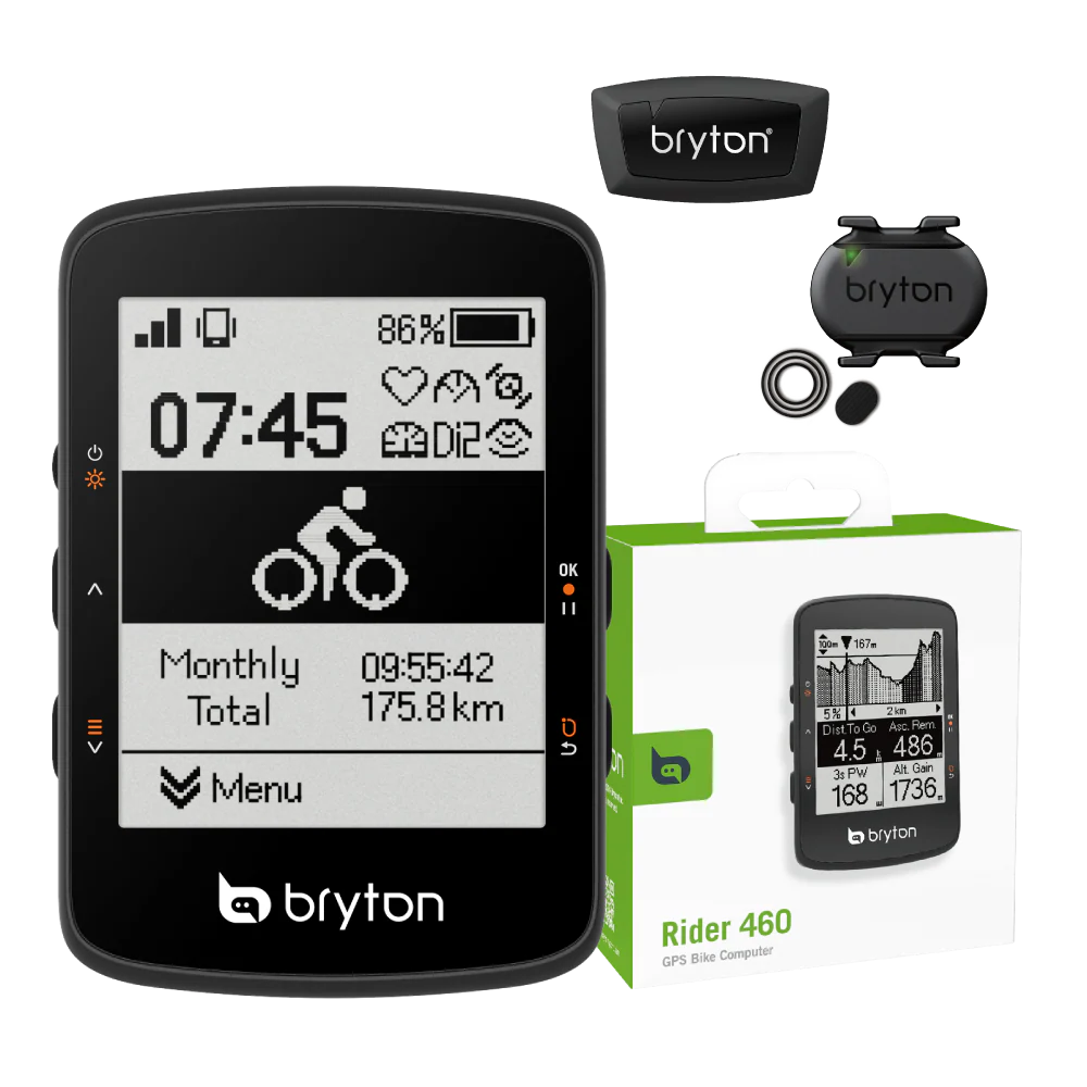 Egyszerűsítsd a bringázást! A Bryton Rider 460 egy csodálatos bringás komputer, amely növeli a kerékpározás élményét. Nagyméretű, 2.6"-os fekete-fehér képernyője kristálytiszta láthatóságot biztosít, míg az új és továbbfejlesztett GUI (grafikus felhasználói felület) megkönnyíti az adatok megtekintését és megértését. A nagy teljesítményű, 32 órás akkumulátoros üzemidővel megszakítás nélkül élvezheted a nyomon követést, a navigációt és a teljesítményfigyelést. A gyorsmenü funkcióval a lényeges kerékpáros információkhoz könnyen hozzáférhetsz gombokkal akár egyszerű tekerés, akár edzés közben. Ráadásul a Rider 460 Climb Challenge és Workout funkciói grafikusan jelennek meg, így könnyebb leküzdeni az emelkedőket. Összességében a Rider 460 egy megbízható és hatékony eszköz, amely leegyszerűsíti és vezeti a kerékpározást, és képessé tesz arra, hogy a kalandokat a következő szintre emelje.