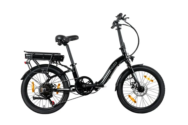 Aluvázas, pedálrásegítéses (pedelec), pedálszenzoros uniszex, összecsukható (folding) elektromos kerékpár városi közlekedésre, autós közlekedés kiegészítésére, hátsó agymotorral, és persze teljes "menetfelszereléssel": csomagtartó, első-hátsó elemes világítás, sárvédők, kitámasztó.