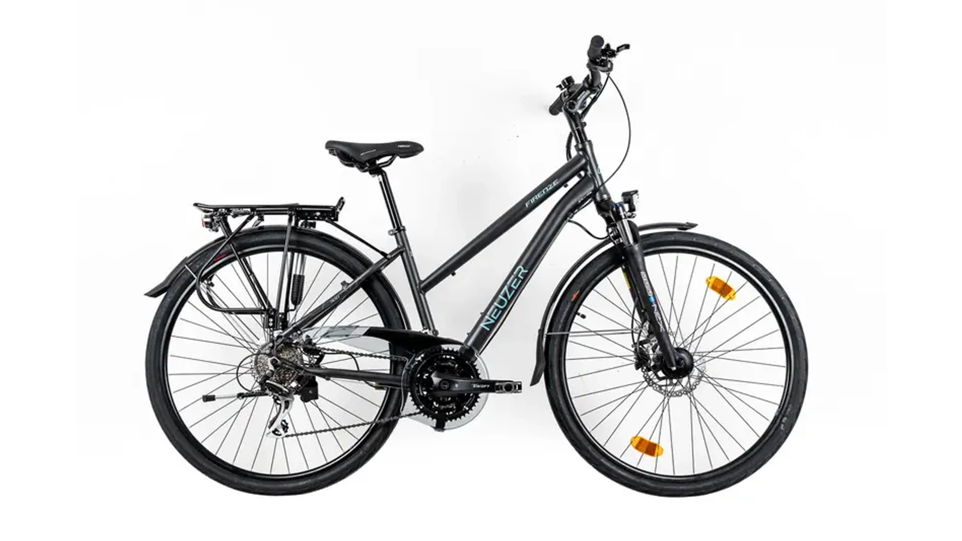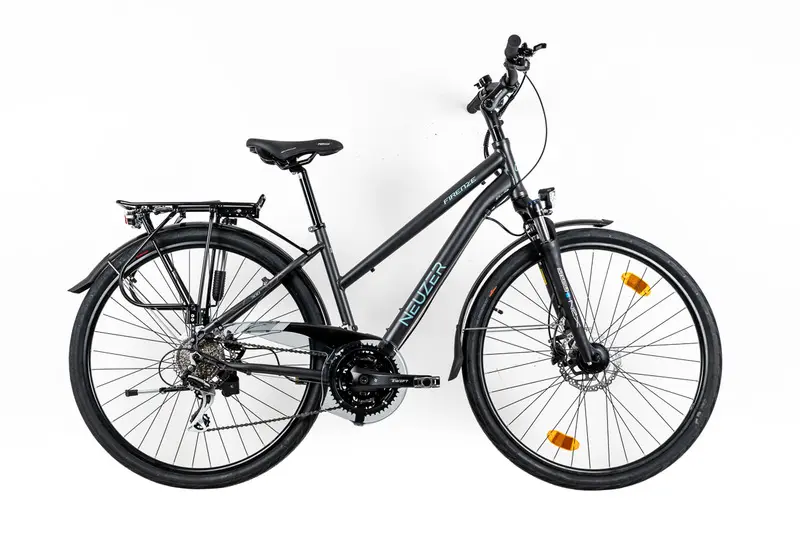 A NEUZER Firenze hétköznapokra és hétvégékre, városi használatra és túrázásra egyaránt alkalmas, első-hátsó világítással, sárvédőkkel, csomagtartóval és kitámasztóval felszerelt 28"-os trekking bicikli, avagy túrakerékpár. A család tagjai között mindenki megtalálhatja a stílusához és igényeihez leginkább megfelelő bicót. Közös bennük a könnyű, de strapabíró 6061 alumínium váz és a Suntour rugós villa, a széles áttétel-tartományban dolgozó Shimano váltórendszer, a duplafalú felnikre szerelt 42-622-es gumik és az agydinamós világítás. Normál ("férfivázas") alacsony átlépésű ("női vázas") változatban is gyártjuk őket, utóbbiak ejtett felsőcsöve megkönnyíti a le-és felszállást, így nemcsak hölgyeknek, de idősebbeknek is ajánlhatók. Íme a családtagok: